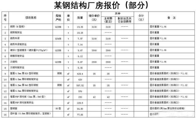 另外,预算是需要考虑市场各方面材料价格的市场走势的,尤其是钢材的价格波动较大,可能同一个钢结构工程项目,相隔几天就有造价成本的波动,进而影响报价,其中主要原因就在于钢材价格市场波动。